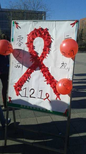 12月2日,首经贸红十字会的志愿者们在本校第三食堂门口开展了一系列防艾主题活动。虽然天很冷,但志愿者们依旧大声喊着“行动起来,向‘零’艾滋迈进”的口号,用热情和爱心感染着来来往往的同学:贴红丝带,让一个个小小的红丝带拼成一个大红丝带,用它将“艾”与爱连接起来;写祝福,让明信片上的每一句祝福去温暖那些需要关爱的艾滋病人;反歧视宣誓,参与者们在志愿者倡导下纷纷举反歧视卡片合影,宣誓“奉献爱心,消除歧视,从我做起!”;最后,在“121”灯光亮起的那一刻,同学们为艾滋病患者送上最真挚的祈愿。