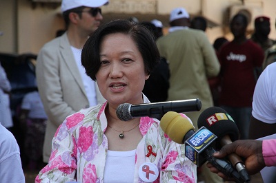 黄大使夫人余慧代表使馆致辞,表示当今世界,艾滋病仍是全球最重大的公共卫生挑战之一。中国作为负责任的大国,积极参与全球抗击艾滋病事业,重视同非洲国家开展医疗卫生合作。今年9月中非合作论坛北京峰会期间,习近平主席夫人彭丽媛教授同非洲领导人夫人举行中非艾滋病防控主题会议并发布联合倡议,为中非艾滋病防治合作注入了新的强劲动力。希望各方加强合作,为实现联合国2030年可持续发展议程中的终结艾滋病流行目标贡献爱心和力量。