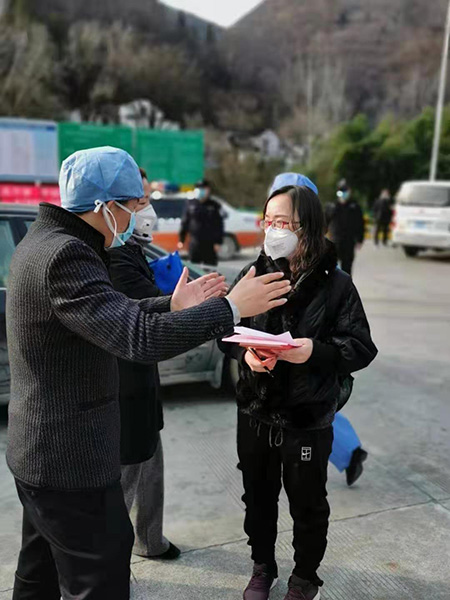 王小芳(右一)在旬阳县交通检疫点调研