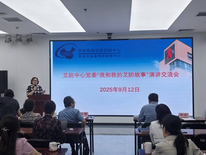 为深入学习贯彻党的二十大精神,弘扬劳模精神,凝聚防艾力量,激励艾滋病防治工作者担当奉献,艾防中心党委于2025年9月12日成功举办“我和我的艾防故事”主题交流会。中国疾控中心群团处韩璐副处长、艾防中心领导班子成员及部分职工齐聚一堂,共同聆听艾防工作者的动人故事。