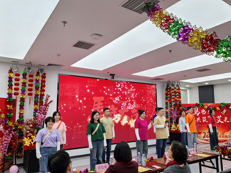 团拜会在领导班子和首席专家深情合唱红歌《珊瑚颂》并集体拜年中拉开帷幕。节目内容丰富,精彩纷呈,有传递美好祝愿的合唱,清新悦耳的吉他弹唱,活力四射的舞蹈,寓教于乐的朗诵和情景剧,现场掌声此起彼伏。活动期间,还为本命年职工赠送马年吉祥物,增添了节日氛围。