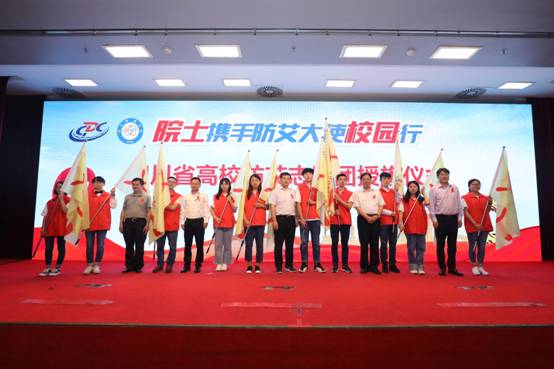 在红丝带健康大使刚强的主持下,本次活动还隆重举行了四川高校防艾志愿者队伍授旗仪式,启动了“四川省安全套发放机进高校全覆盖行动”。电子科技大学等10所高校作为四川省高校志愿者队伍代表接受了授旗,并倡议更多的有志青年加入志愿者队伍,为高校乃至全社会的艾滋病防治工作贡献更多的力量。“四川省安全套发放机进高校全覆盖行动”作为四川省专项部署的高校防艾工作,充分展现了四川省高校防艾工作不断走向深入。(艾防中心综合防治与政策室 刘玉芬)