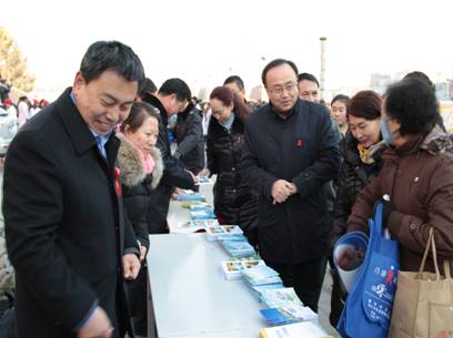 12月1日上午,宁夏回族自治区卫生厅田丰年副厅长、疾控处张波处长和自治区疾控中心李丽主任等领导前往自治区公安厅安康医院美沙酮门诊,听取了门诊工作人员工作情况的介绍,亲切慰问了参加美沙酮维持治疗的艾滋病感染者和病人,田副厅长握住感染者的手,鼓励他们树立生活的信心,学会科学对待疾病,坚持吃药,安心治病。并对门诊在有效遏制艾滋病传播、减少毒品犯罪、维护社会稳定、构建和谐社会等方面发挥的作用给予了肯定。随后田丰年副厅长一行来到宁夏第二男子强制隔离戒毒所与银川市、兴庆区各级领导观看了由戒毒学员们表演的舞蹈《舞动的红丝带》、手语操《国家》和独唱《拯救灵魂的港湾》等艾滋病防治宣传节目,内容精彩,形式多样,同时穿插着艾滋病防治知识有奖竞答,学员们踊跃抢答,互动频繁,对预防艾滋病传播进行了生动活泼的宣传,受到了大家的热烈欢迎。最后田副厅长等人来到光明广场,参加兴庆区艾滋病综合防治领导小组主办、兴庆区疾控中心与宁夏广电总台联合承办的“飘扬的红丝带,你我同参与”现场直播大型公益宣传活动,并视察自治区、银川市、兴庆区等卫生医疗单位组织的文艺演出、千余人志愿者方队抗艾宣誓及签名、有奖知识问答等宣传活动。