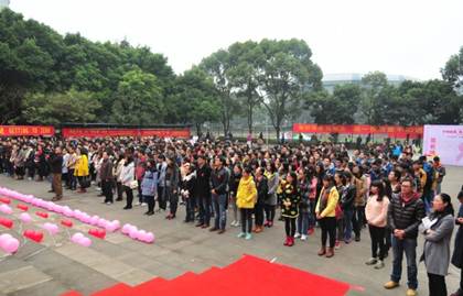 重庆市卫生计生委疾控处金克力处长主持活动开幕式。市卫生计生委刘克佳副主任、市教委邓睿副主任、北碚区人民政府副区长刘永同志、西南大学周长勇副校长、市疾病预防控制中心王豫林主任和唐文革副主任、北碚区卫生计生委阳光主任等相关领导出席了本次活动开幕式。市疾控中心、北碚区疾控中心、市九人民医院、西南大学校医院等医疗机构医务工作者,西南大学、重庆邮电大学、重庆理工大学、重庆科创职业学院、重庆青年职业技术学院、重庆文理学院、重庆师范大学等学生志愿者以及江北区绿叶义工志愿者协会志愿者等近500多人参加了本次宣传活动。