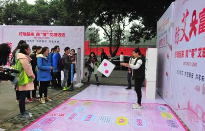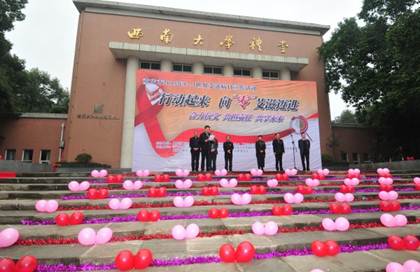 为进一步宣传普及艾滋病防治知识,依法深入推进艾滋病防治各项工作,为艾滋病防治工作的顺利开展营造良好社会氛围,2015年11月30日,重庆市卫生计生委和重庆市教育委员会在西南大学校园内联合主办了第28个世界艾滋病日主会场宣传活动。