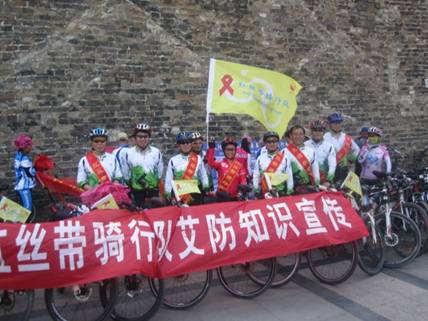 安徽省凤阳县“红丝带”骑行队宣传艾防知识