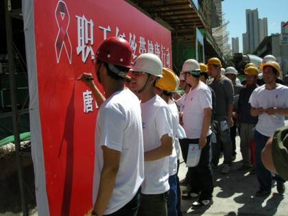 2013年5月29日,河北省唐山市总工会与市疾控中心联合开展了“职工红丝带健康行动”艾滋病预防宣传进工地活动,有1000余名建筑农民工接受了艾滋病预防知识的宣传教育。