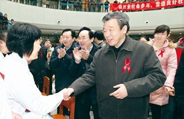 2012年12月1日是第25个世界艾滋病日。正在河南省安阳市调研的河南省委书记、省人大常委会主任卢展工来到安阳市图书馆、文化馆广场参加世界艾滋病日宣传活动。