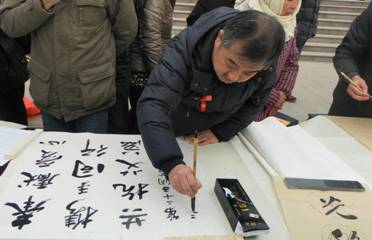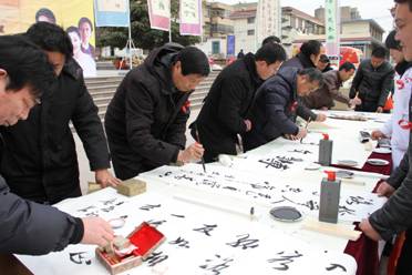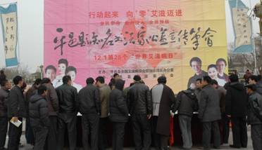 12月1日,山东省临沂市平邑县书法家协会组织20多名县内知名书法家,紧紧围绕2012年世界艾滋病日宣传主题“行动起来,向‘零’艾滋迈进”和副标题“全民参与,全力投入,全面预防”的宣传要求,以对艾防高度重视,对人民满腔热情,对公益事业积极参与的精神,在县城莲花山广场举办了世界艾滋病日公益笔会艾防宣传活动。