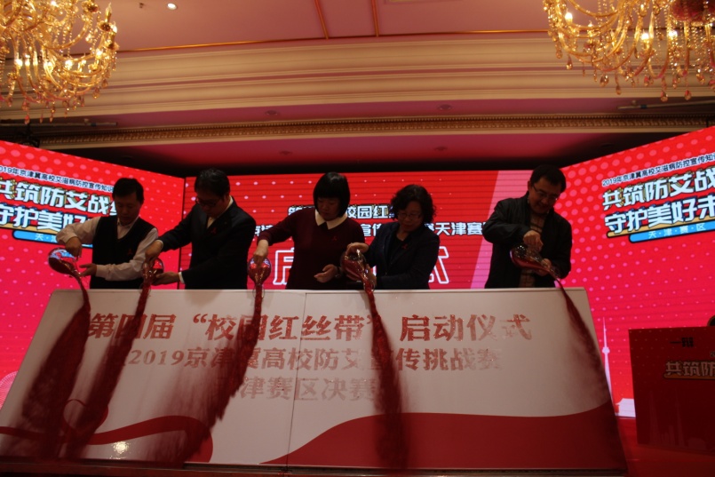 市卫生健康委疾控处处长韩金艳、团市委学校部副部长崔宏亮、市教委体美劳教育处高占山、市疾控中心副主任江国虹、市疾控中心性艾室主任于茂河出席了该活动并启动了天津市第四届“校园红丝带”预防艾滋病系列公益宣传活动暨2019年京津冀高校防艾宣传知识挑战赛天津赛区决赛。