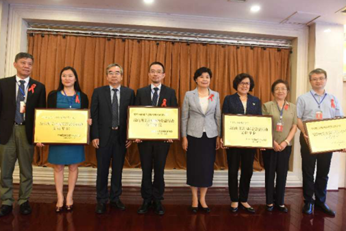 颁牌仪式上,国家卫健委副主任崔丽、国家卫健委疾控局局长毛群安、中国性病艾滋病防治协会副会长沈洁、副会长郝阳分别为中国人口福利基金会、葛兰素史克(中国)投资有限公司、美年大健康产业控股股份有限公司、吉利德(上海)医药科技有限公司颁发“凉山州艾滋病防治公益行动”合作单位/支持单位荣誉铜牌。