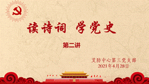 为落实习近平总书记在党史学习教育动员大会上的重要讲话精神和《中共中央关于在全党开展党史学习教育的通知》,结合《中国疾病预防控制中心艾防中心党委关于开展党史学习教育的工作方案》要求,艾防中心第三党支部分别于2021年3月30日和4月28日组织了两次“读诗词 学党史”主题党日活动。为方便不同办公区和在外参加新冠肺炎疫情防控工作的党员参加学习,活动均通过线上和线下会场同步召开。